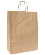 Buste in carta avana rigata con manici in cordino di carta intrecciata avani incollati.