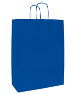 Buste in carta kraft bianco fondo colorato blu oceano con manici in cordino di carta intrecciata blu incollati.